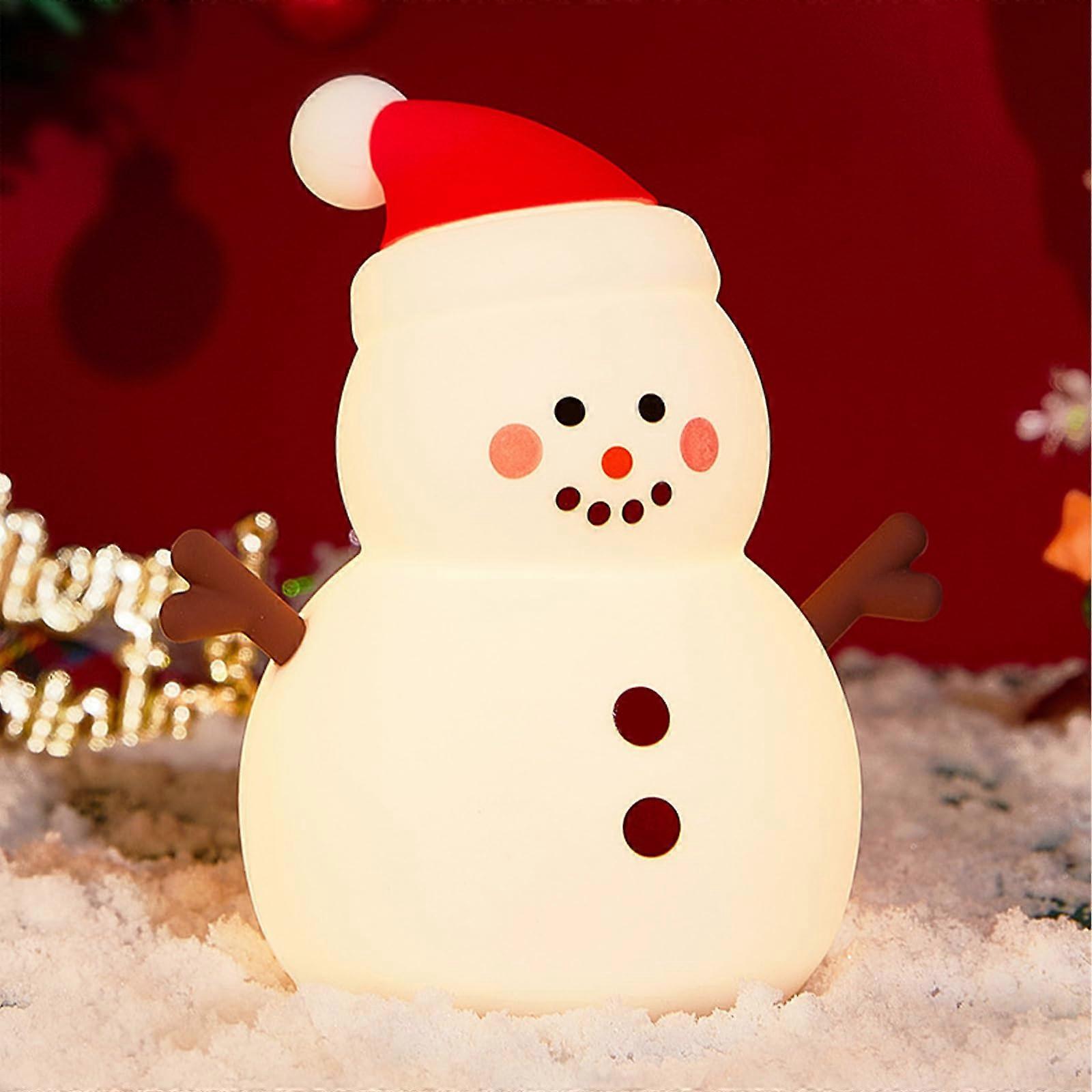 Christmas Night Light Snowman Design with 3 Brightness Levels, Rechargeable Silicone Lamp with 30Min Timer for Kids Bedroom Holiday Decor