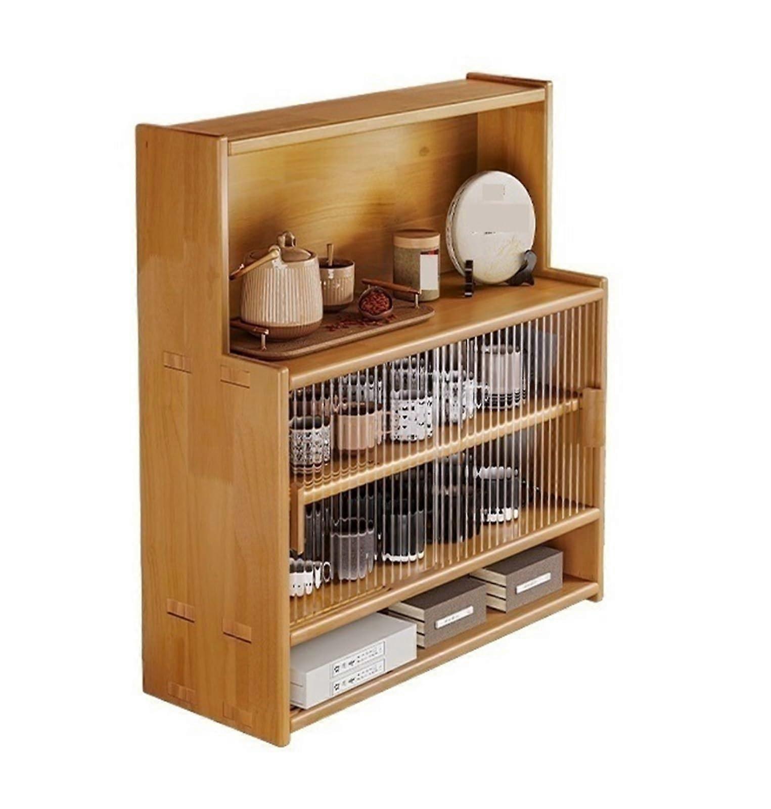 Coffee Cup Storage Cabinet with Adjustable Shelf and Sliding Glass Doors for Kitchen or Office, Natural 55x28x74 cm