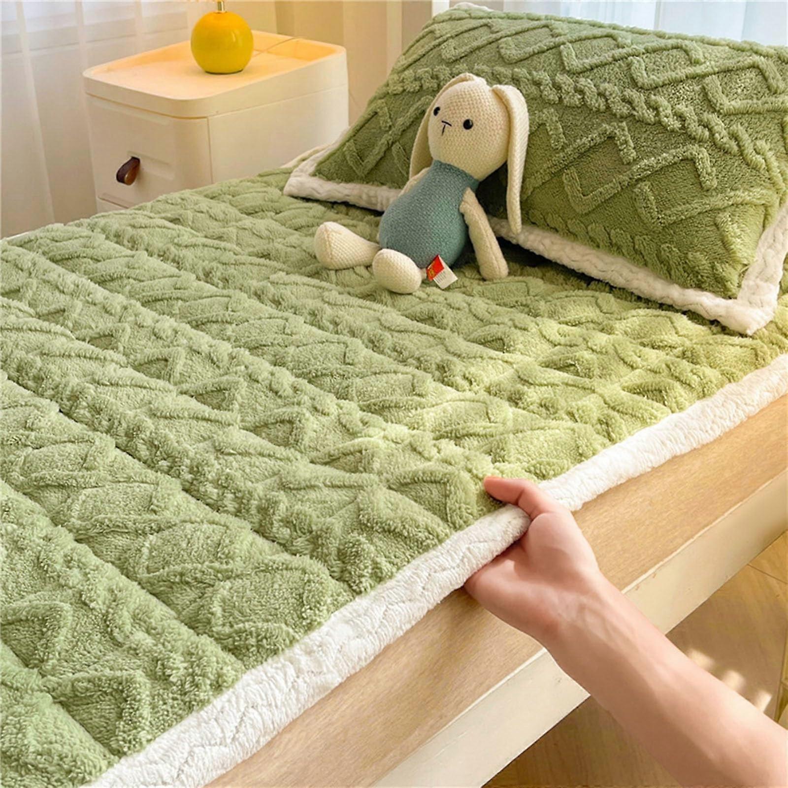 Velvet Fitted Sheet with Quilted Mattress Pad, ExtraWarm NonSlip Plush Cover for Winter