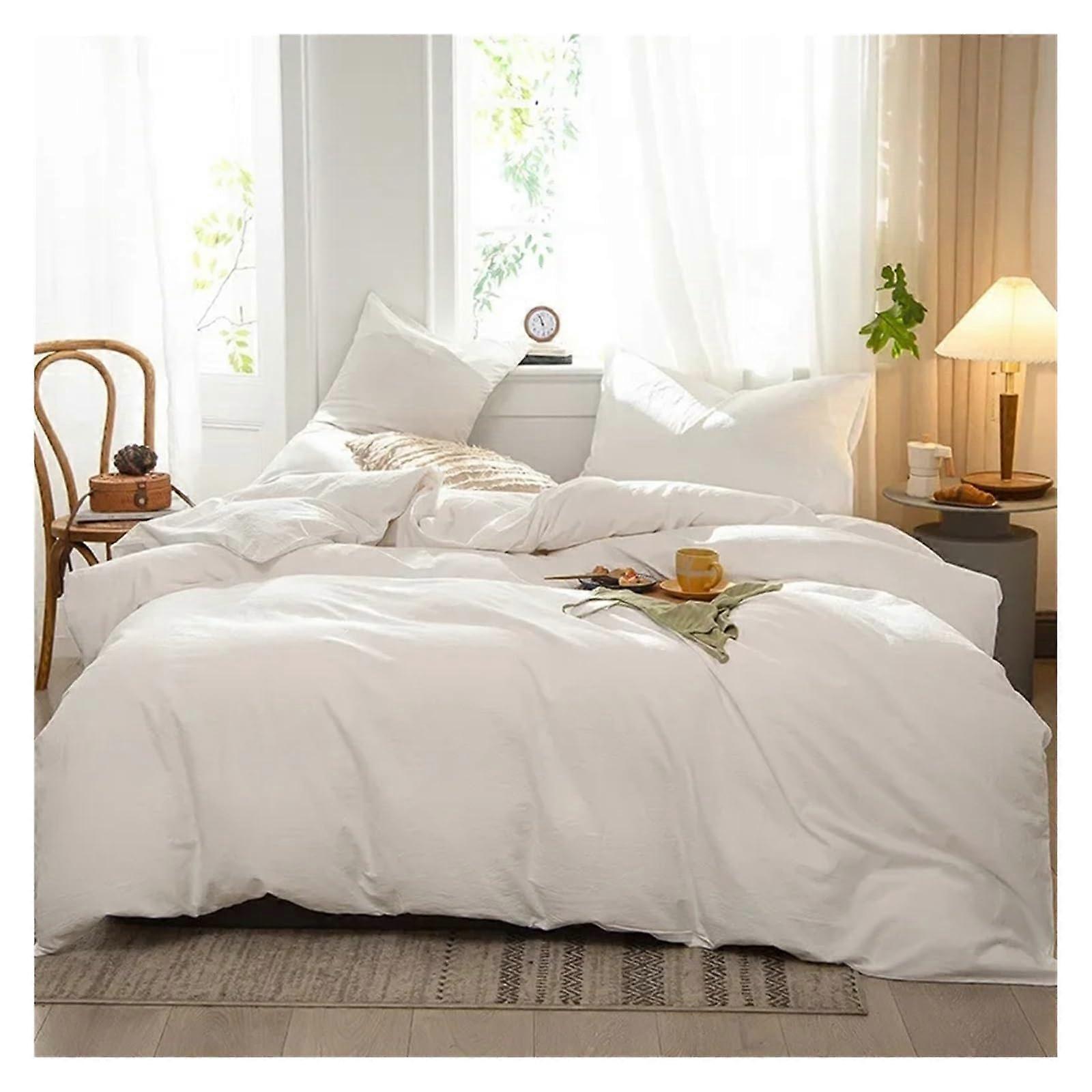Queen Fitted Sheet and Soft Cotton White Duvet Cover Set, Breathable Quilted Bedroom Bedding