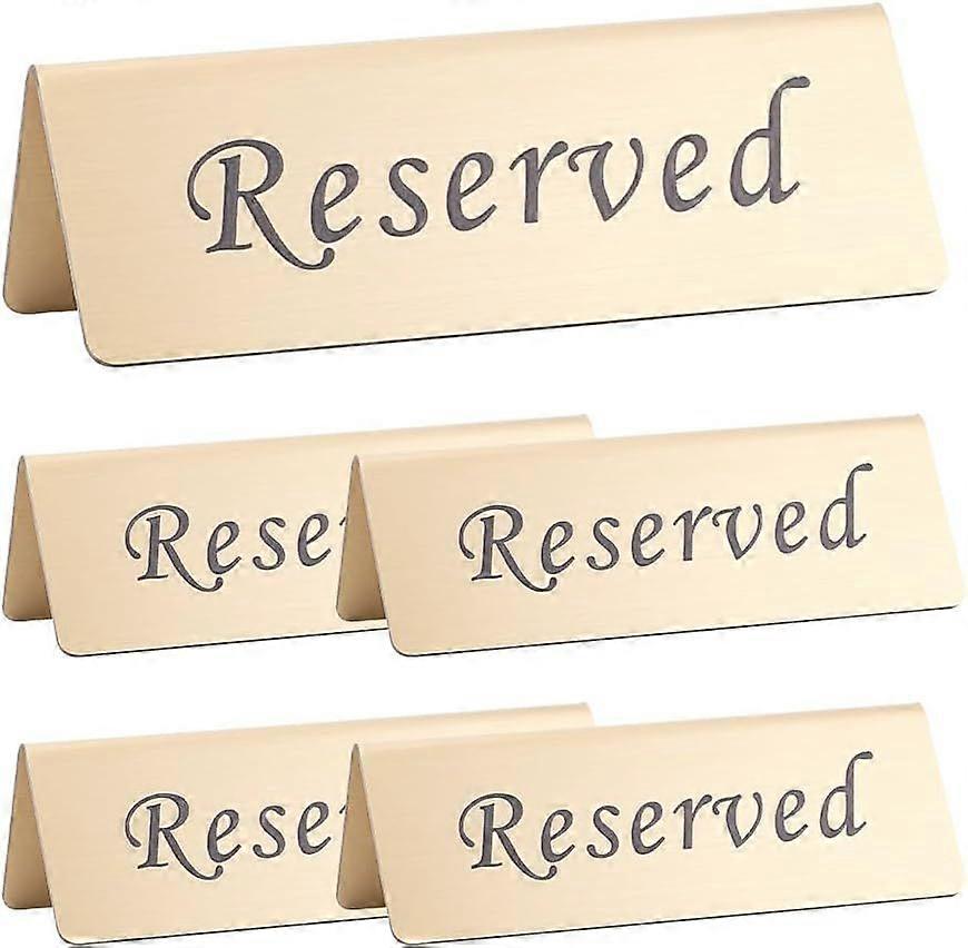 UNICRAFTALE 5Pcs Reserveds Table Signs Stainless Steel Reserved Sign for Restaurant Golden Metal Table Top Reserveds Sign Double Sided Reserved Tables