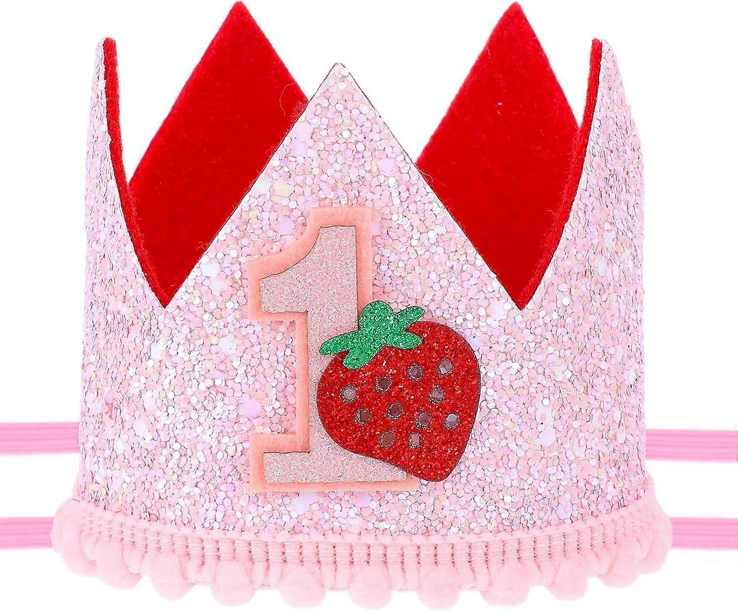 Xinjoduz 1 PCS 1st Birthday Crown Pink Strawberry Party Hats Sparkling Strawberrys One Headwear Sweet Pink Sequin First Hat for Baby Shower Party Deco