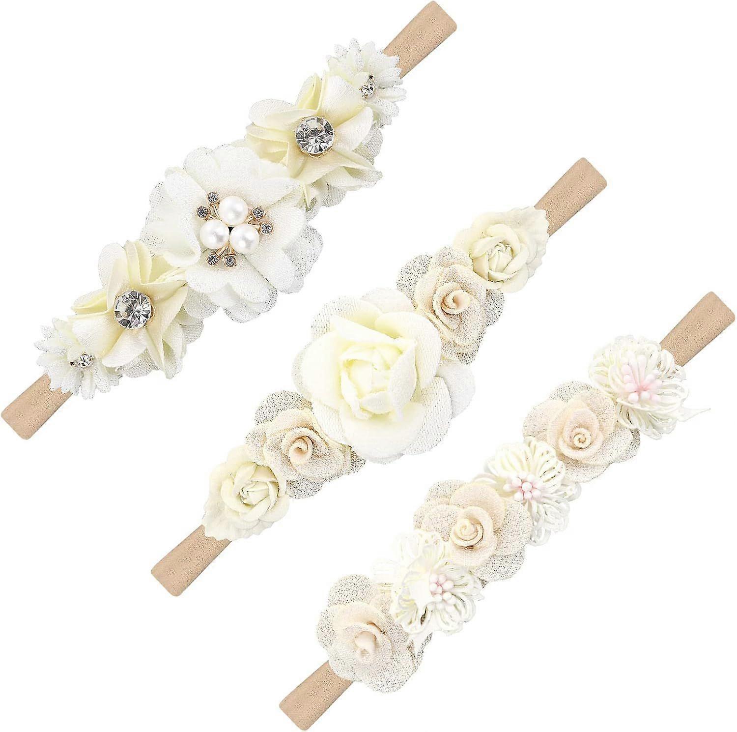 3Pcs Baby Girl Nylon Headbands Floral Infant Flower Elastic Hair Band Bows Wraps for Newborn Toddler Hair Accessorie Headband
