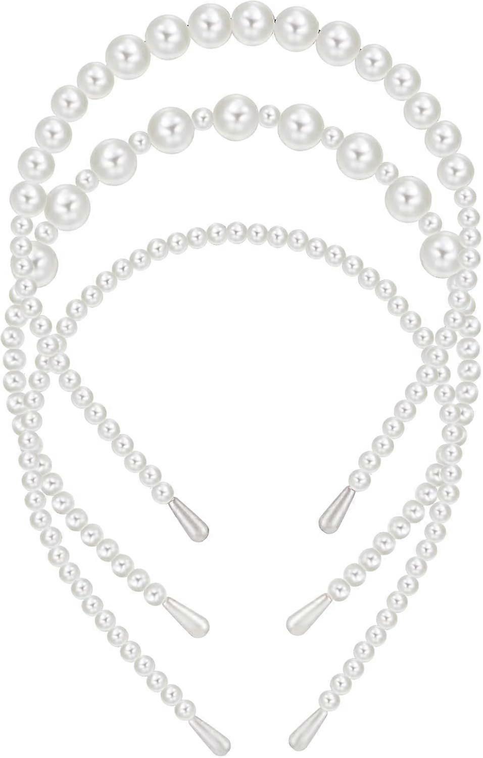 Yolev 3pcs White Faux Pearl Hairbands - Bridal & Fashion Elegant Pearl Headbands for Women & Girls