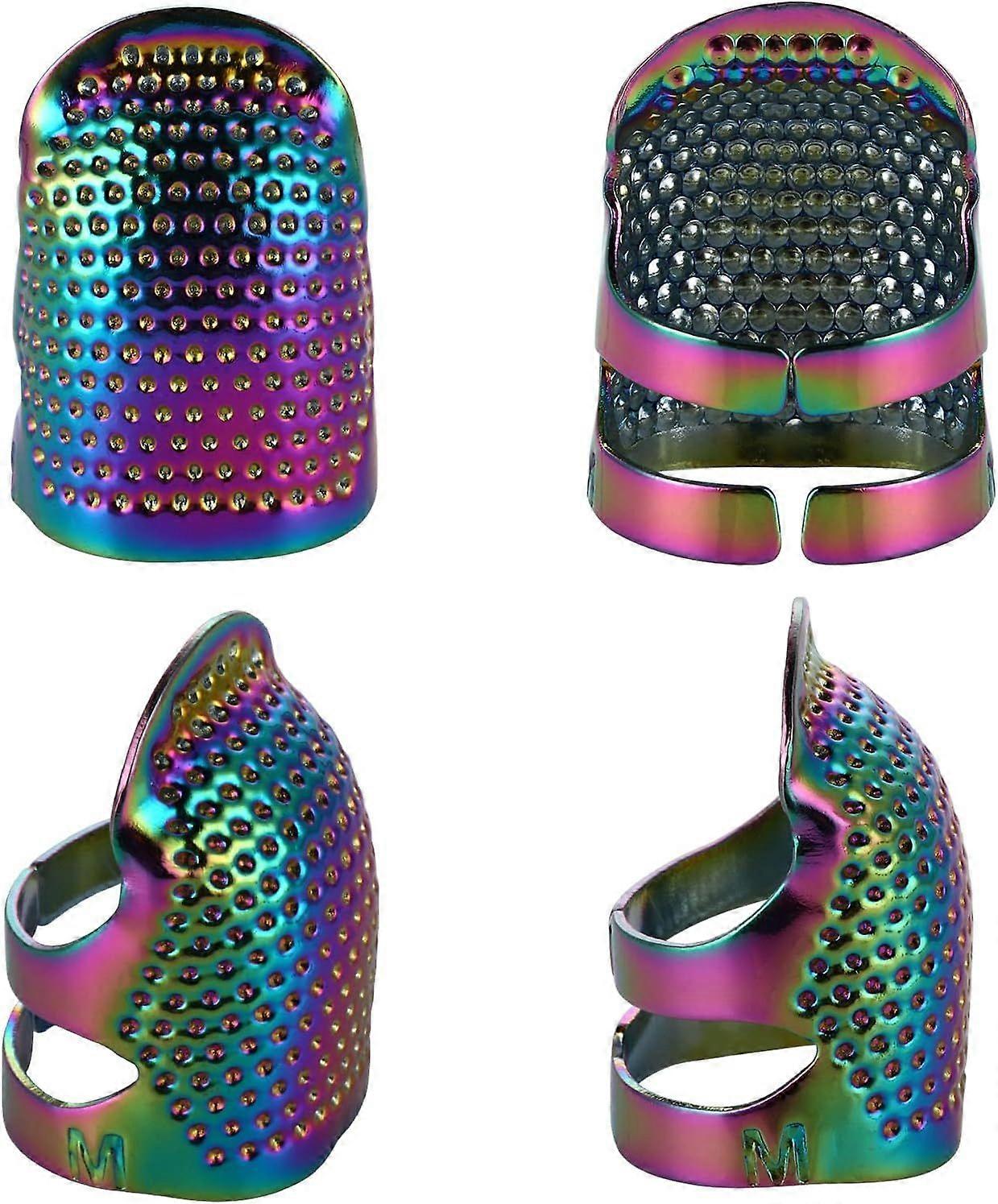 4 Pcs Sewing Thimble Metal Dazzle Copper Sewing Thimble Finger Protector Adjustable Finger Metal Protector Accessories DIY Sewing Tools Product description Features: 1. Made of alloy, not easy to rust and break, convenient for you to use for a long time 2. A dense pattern of pits on the thimble can effectively prevent slippage, allowing you to better pierce clothing. 3. Ideal for needlework, sewing, embroidery, and so on, a good tool for dressmakers and mothers to protect their fingers well. Specifications: Material: Alloy Size Reference: S: 2.3*1.6cm/0.9*0.6in M: .5*1.8cm/0.9*0.7in Package includes: 4 x Finger protector thimbles (2 pieces small size and 2 pieces medium size) Notes: 1. It is not advisable to adjust the size frequently because the material is copper. 2. Choking hazard, keep it far away from children under 3 years old.