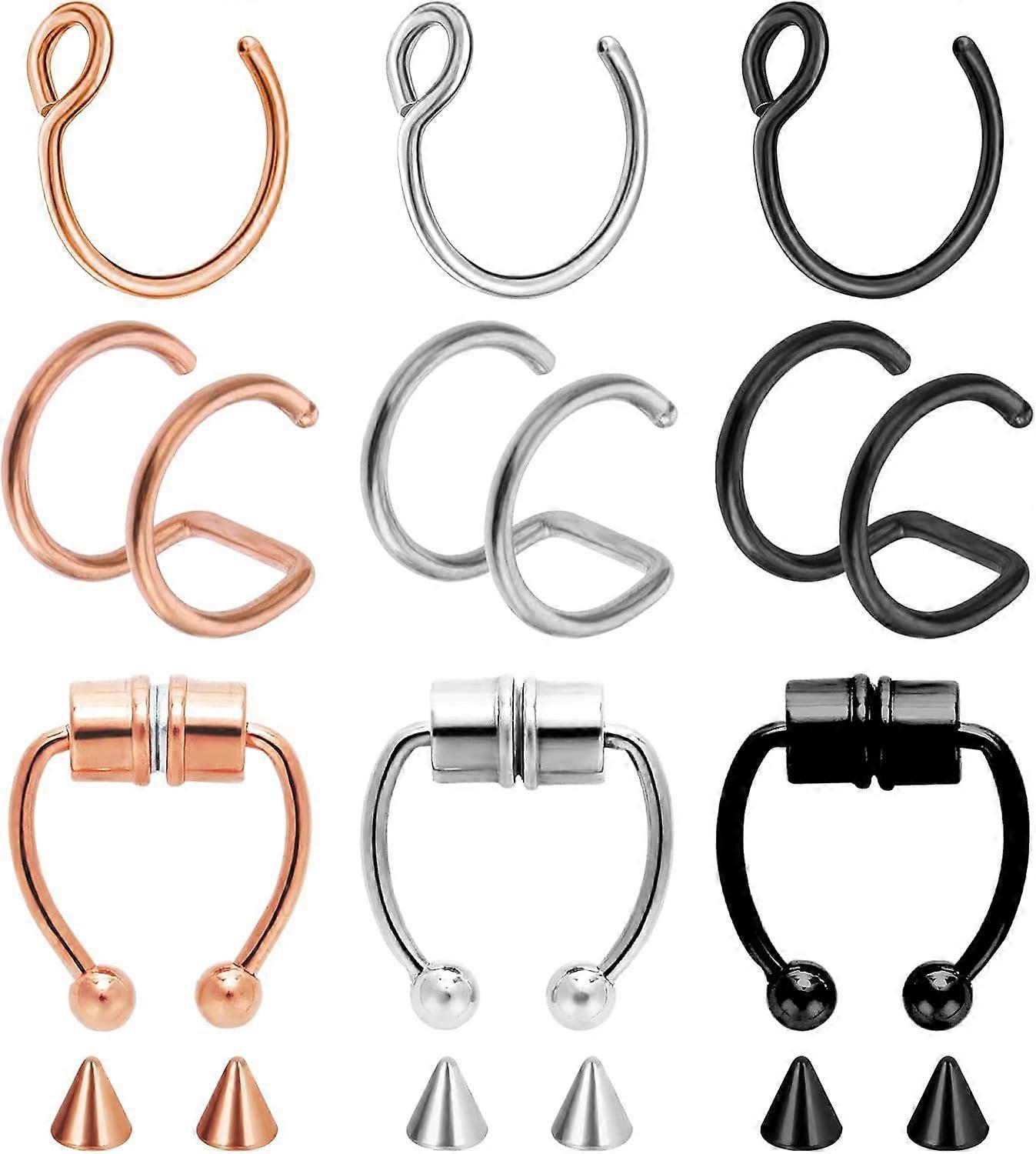 Yolev 9Pcs Septum Piercings Stainless Steel Magnetic Nose Ring Fake Nose Ring Horseshoe Fake Septum Ring Faux Nose Rings for Women Fake