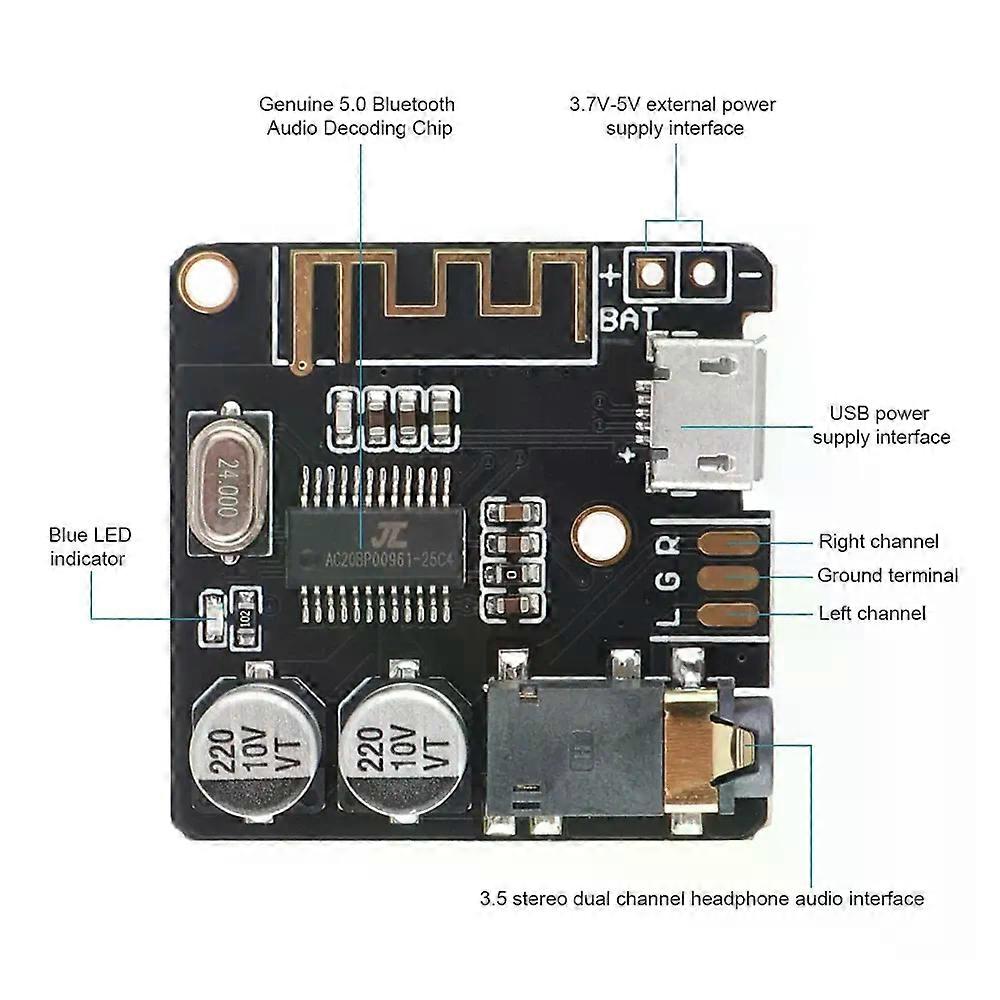 Bluetooth Audio Receiver Board Bluetooth 50 MP3 Lossless Decoder Board Wireless Stereo Music Module 37-5V XY-BT-Mini