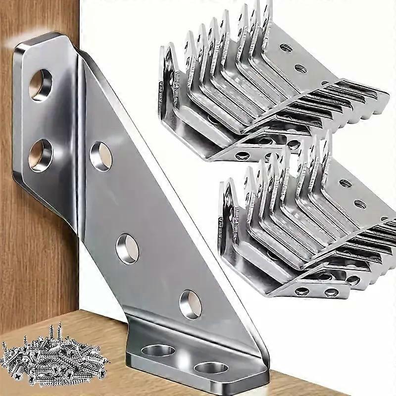 70pcs Heavy-Duty Stainless Steel Corner Brackets 90° Angle Support with Screws Scratch-Resistant Easy Installation for Furniture Scratch-Resistant Finish The scratch-resistant coating enhances the aesthetic appeal while protecting the brackets. Versatile Application Ideal for various woodworking projects, these brackets provide stable support for furniture corners. Bulk Quantity With 70pcs per pack, you have ample supply for multiple projects or replacements. 90° Angle Support Designed for 90° angles, these brackets ensure precise alignment and stability. _x000D_