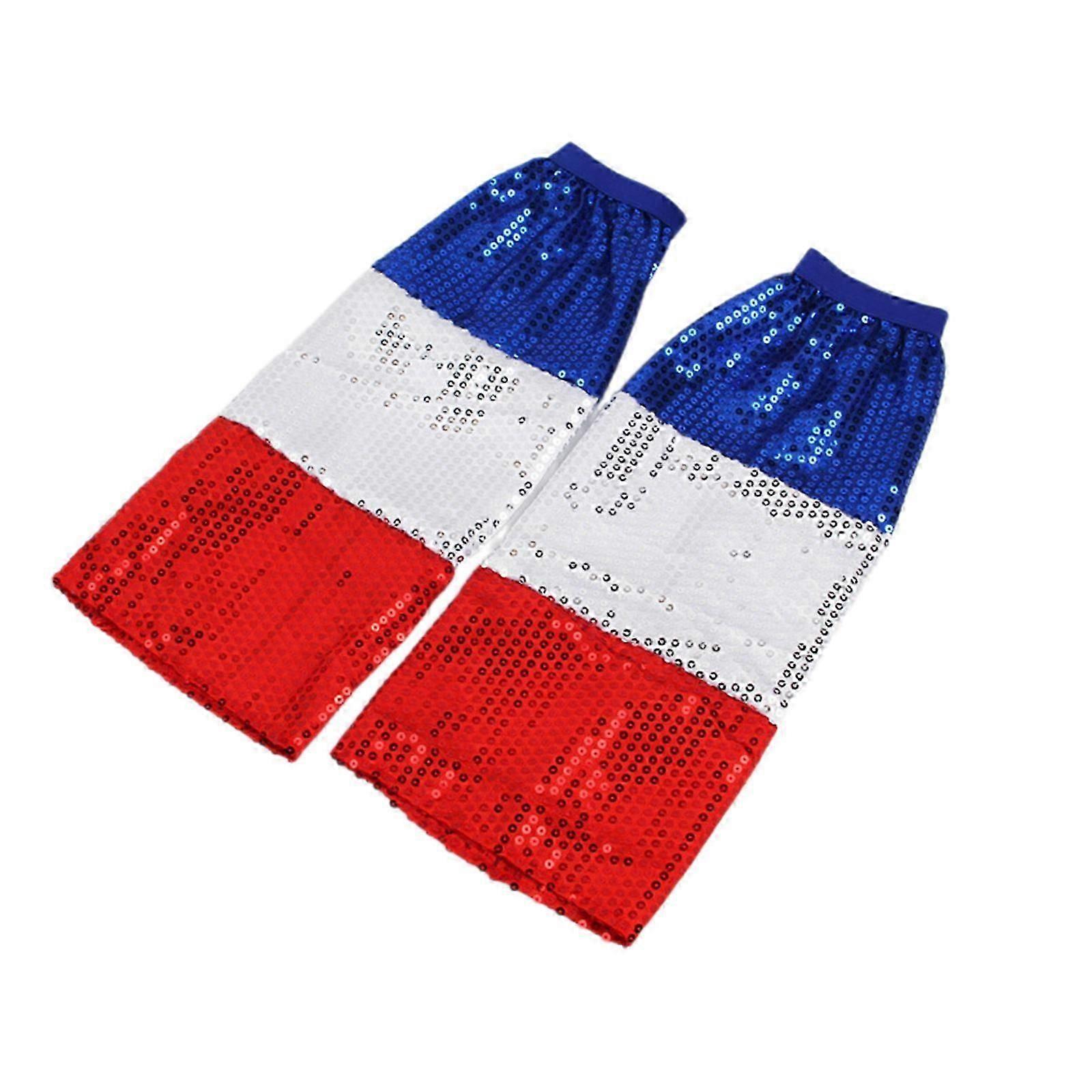 Womens Harajuku Flared Loose Leg Sleeve Cover Harajuku Contrast Color Glitter Sequins Leg Warmer Knee High Long Socks red white blue