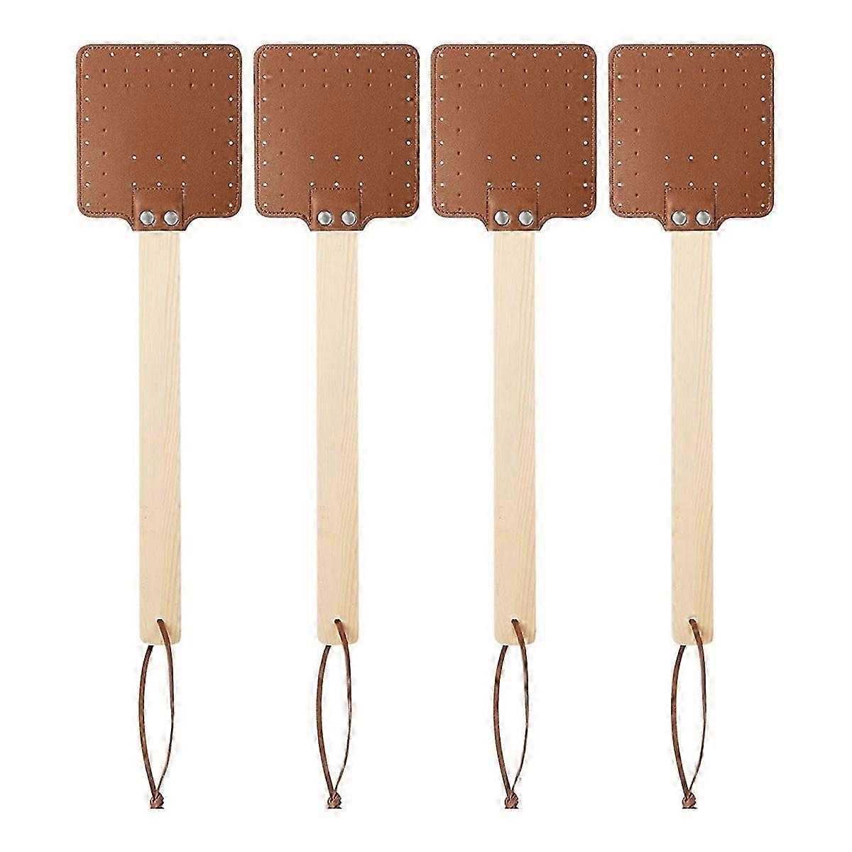 4-Piece 17.3-Inch Leather Fly Swatter With Wood Handle