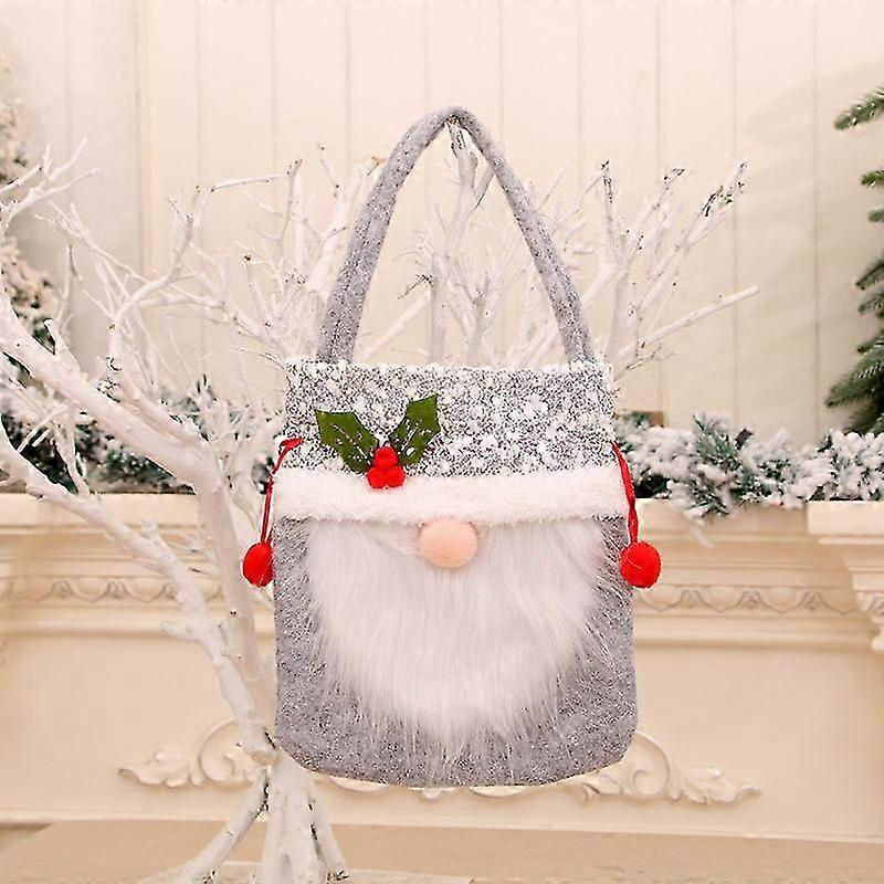 Gray Christmas Gift Bag for Holiday Candy and Apple Storage