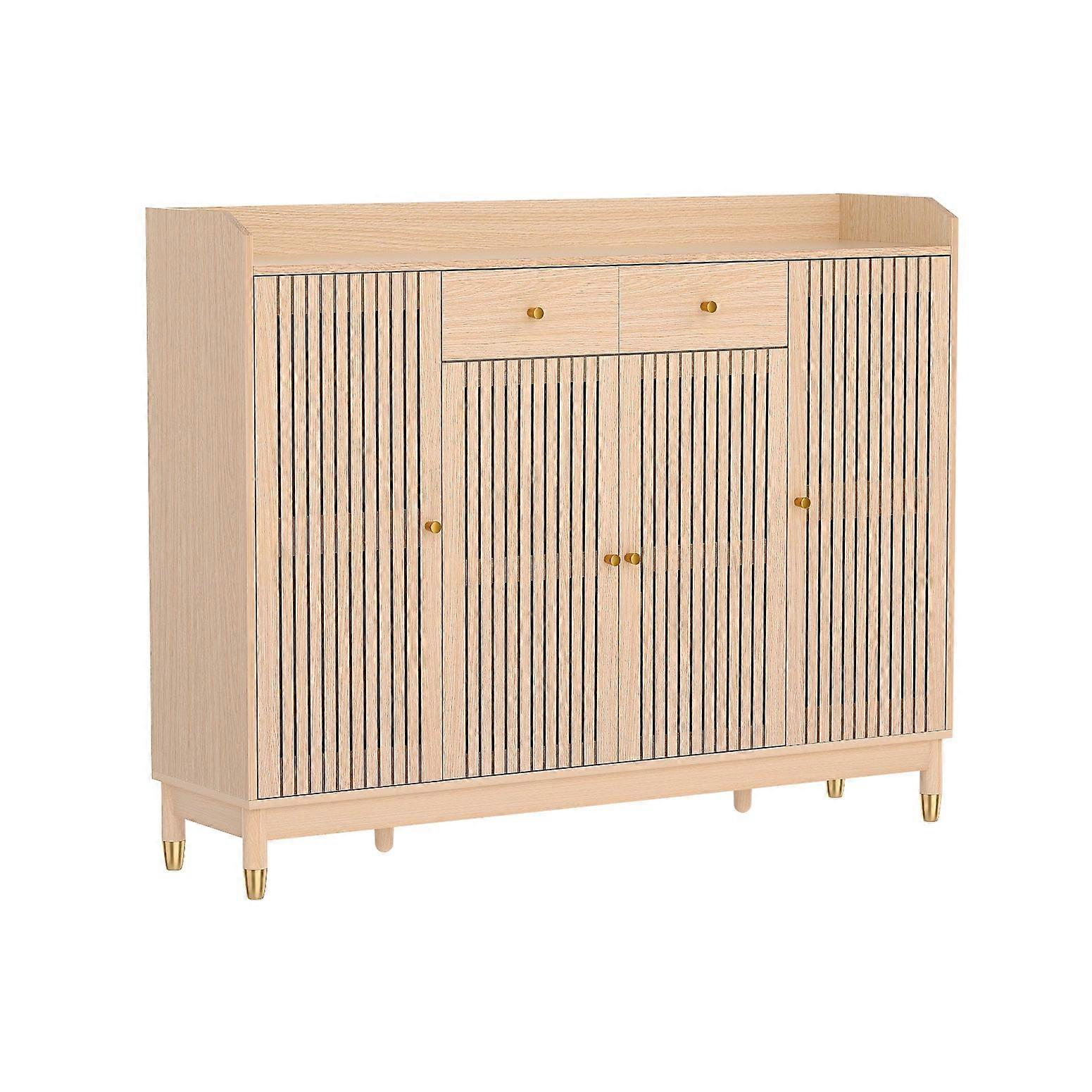 The Artiss Shoe Rack Is A Practical And Stylish Solution For Organizing Up To 26 Pairs Of Shoes. With Shelves Two Pull-Out Drawers Ventilated Doors And Durable Pine Wood Legs This Shoe Rack Keeps Your Footwear Neat And Accessible While Complementing Any Room Decor.