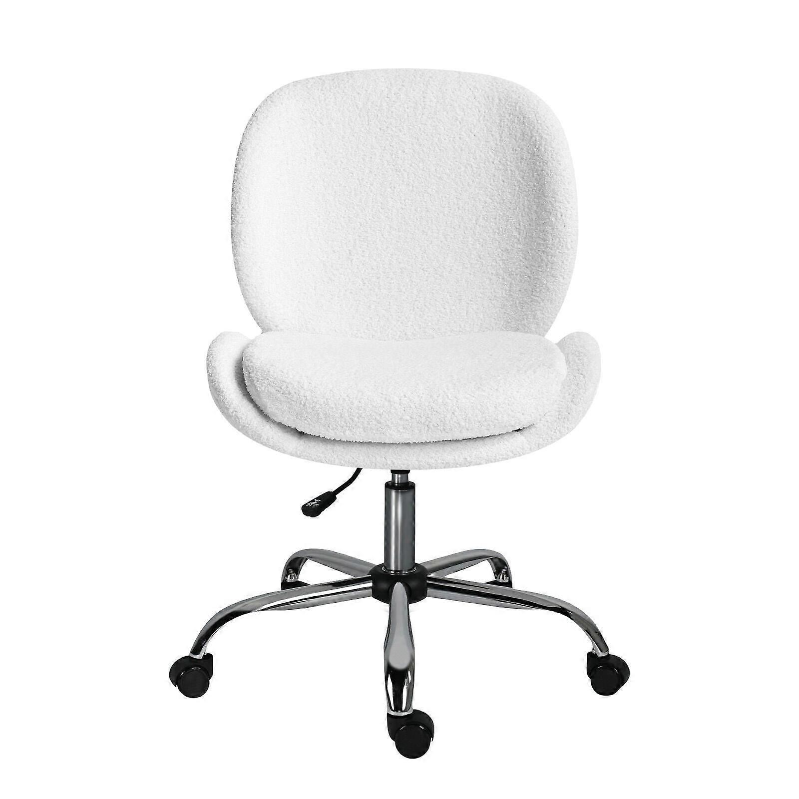 Office Desk Chair Teddy Boucle Armless Swivel Study Seat Ovoid White Office Chairs