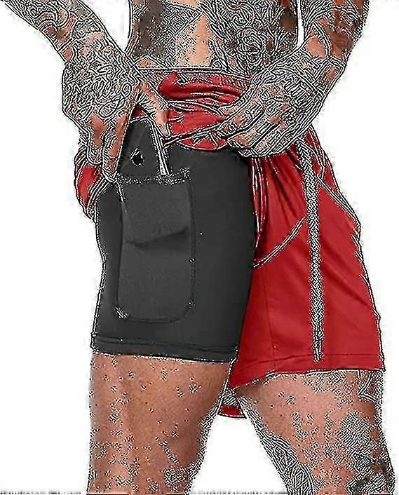 Mens 2 In 1 Running Sweatpants Quick Dry Athletic Sports Gym Training Double Layer