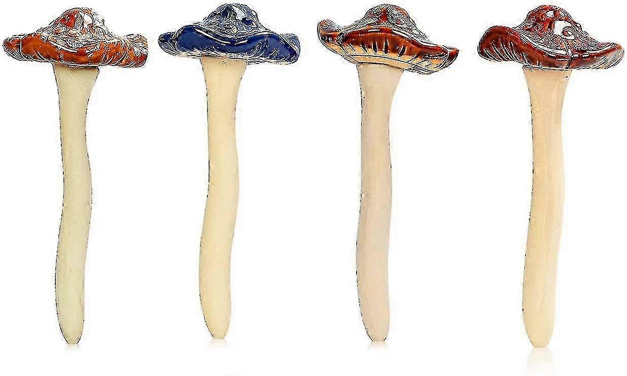 Garden Decoration Mushroom Plug-in, Ceramic Color Glaze, Suitable For Courtyard Garden Balcony (4 Pieces) hwyC