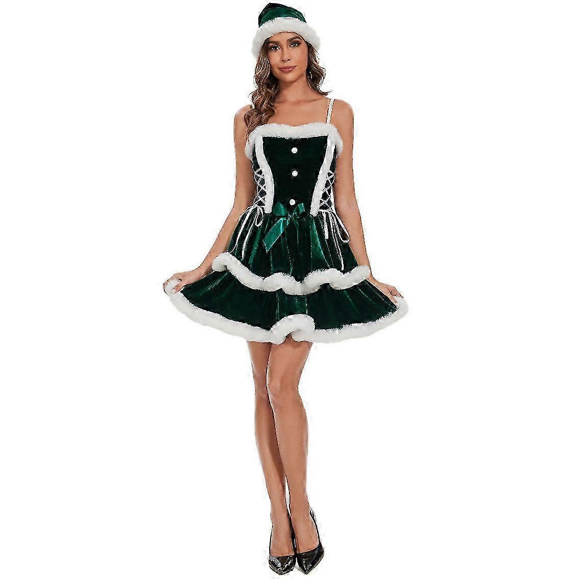 Party Costume for Women Corduroy Christmas Dress Set with Cape