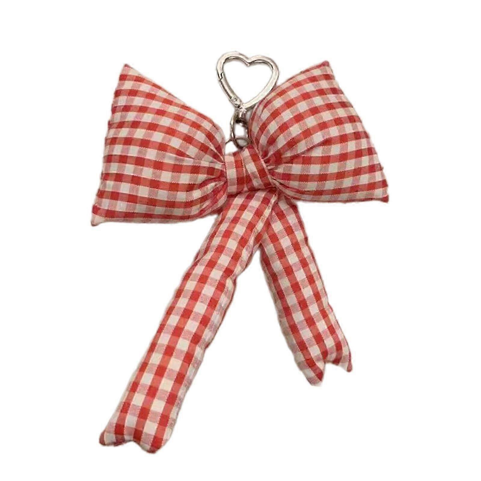Elegant Bowknot Keychain Cotton Cloth Padded Bag Decoration Lightweight Handmade Gift Choice Hanging Charm Red and white grid