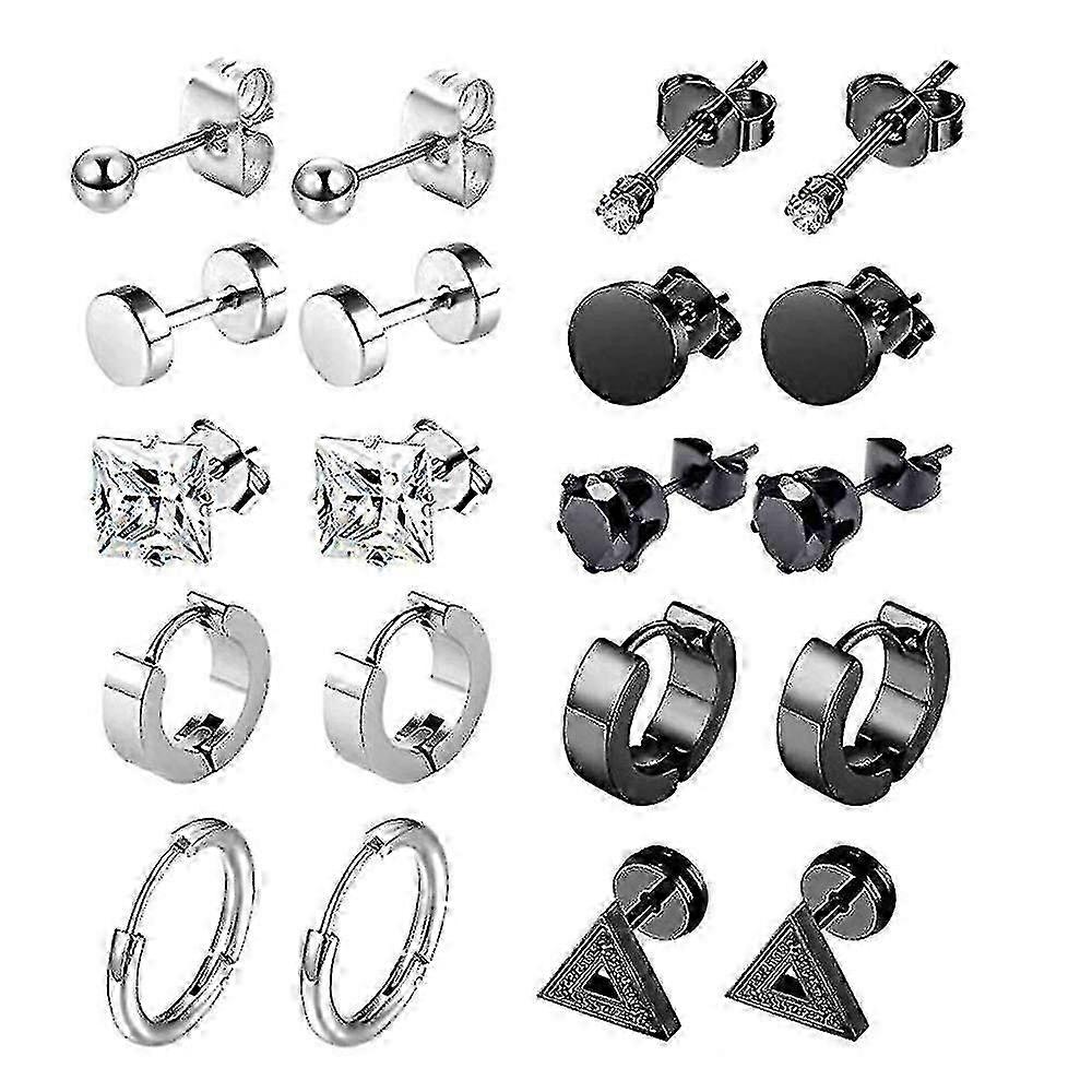 <p>VALUABLE SET: 10 Pairs earrings in 10 different styles. Color: black \u0026 silver. Most economical jewelry set, deserve to purchase</p> <p>FINE CRAFT: Made of high quality stainless steel, which is hypoallergenic and safe for your sensitive skin. Great electroplated and high polished surface make them shiny and smooth</p> <p>PERFECT SIZES: Diameter: 6mm \/ 8mm, Pin Thickness: 1mm (18 Gauge), Pin Length: 6mm, Earring Size: 4*9mm \/ 2.5*10mm. Normal size-suit for men and women</p> <p>FOR ANY OCCASIONS: Beautiful and eye-catching earring set, perfect for girls or women wearing, no age limited. Great choice for daily wearing or other special occasions</p>