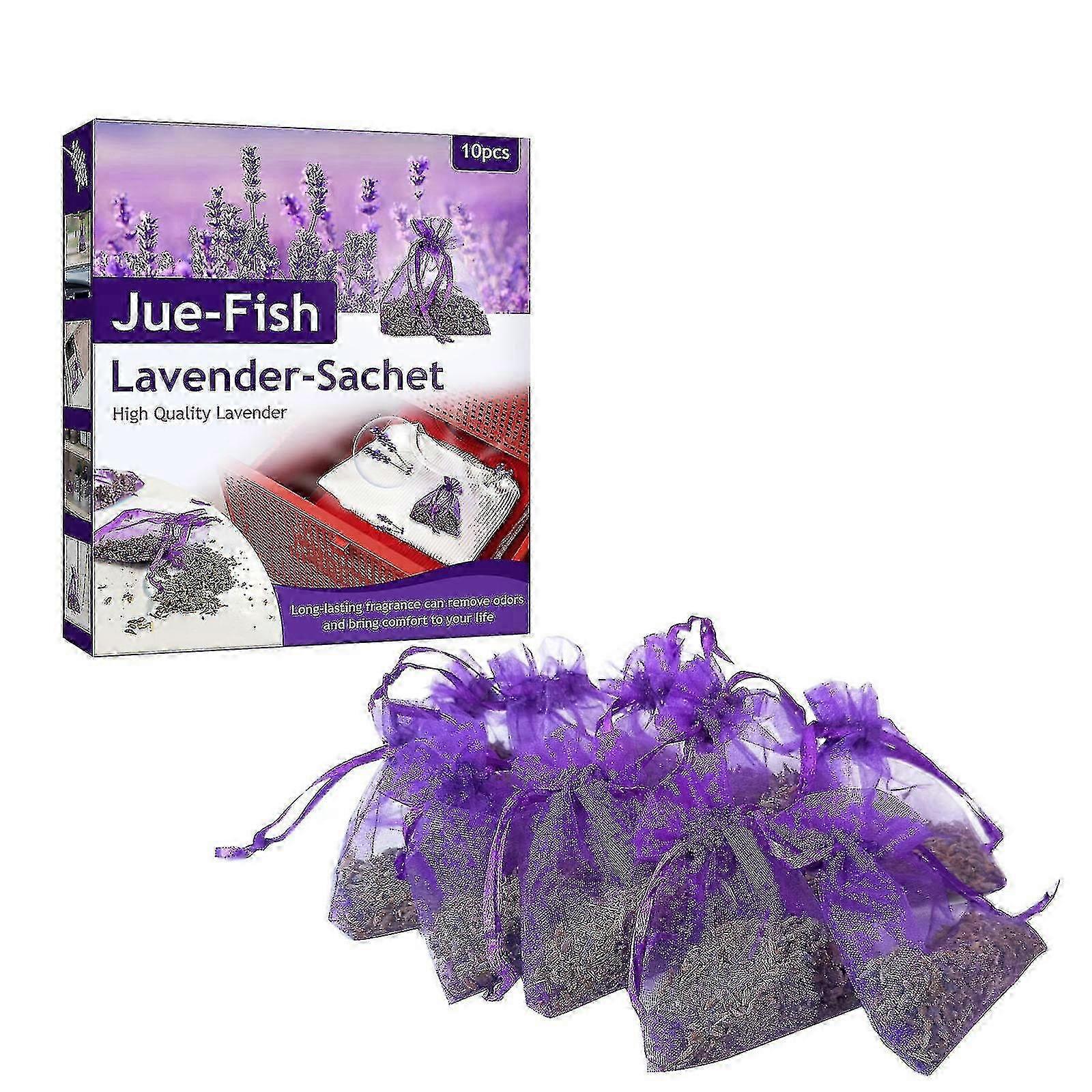 Ten sachets of dried lavender, packaged in small, light purple tulle bags, can be used for deodorizing cars and homes.