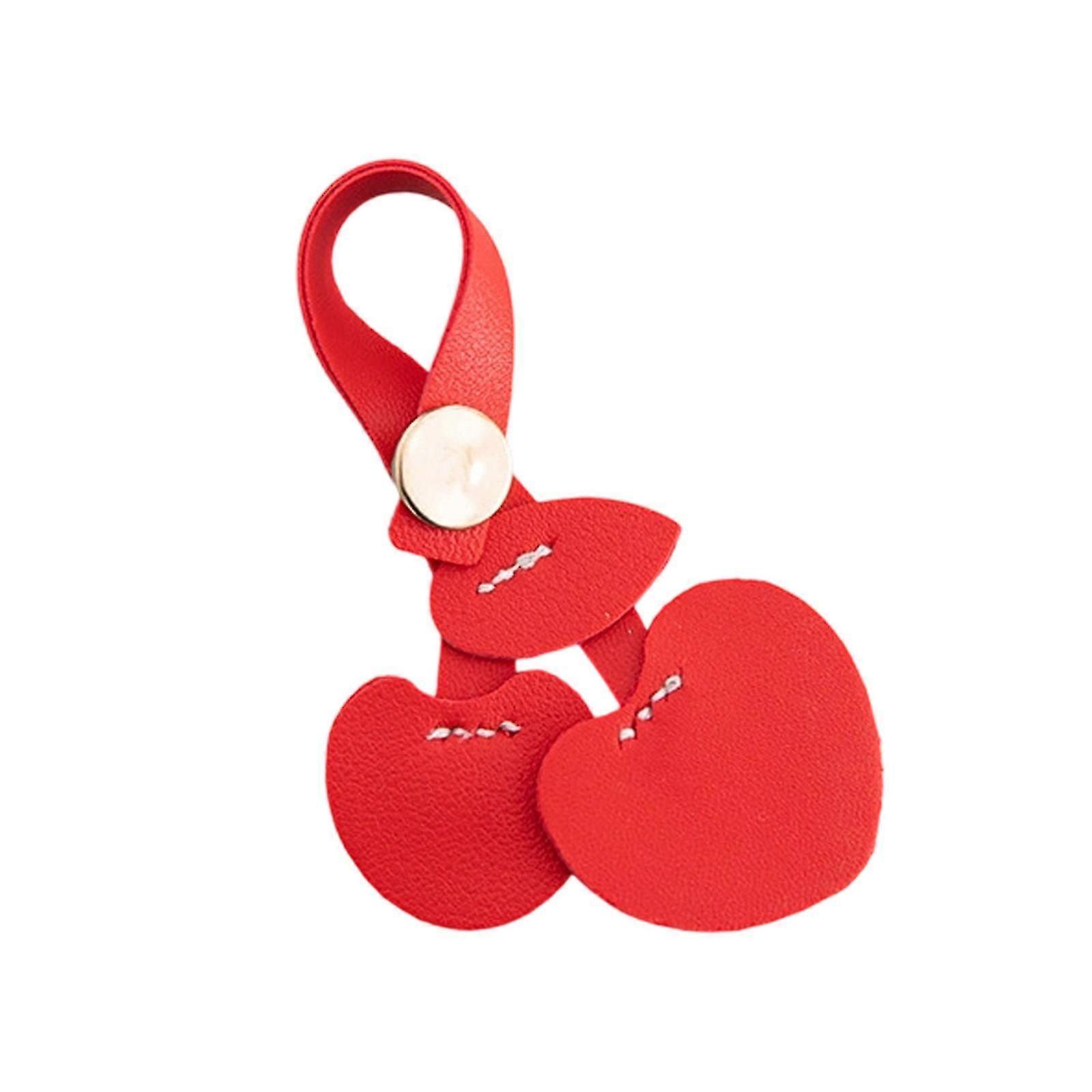 Lightweight Cherry Keyring Heart Shaped Bag Decoration Fashionable PU Leather Ornament for Daily Use and Stylish Look Multicolor