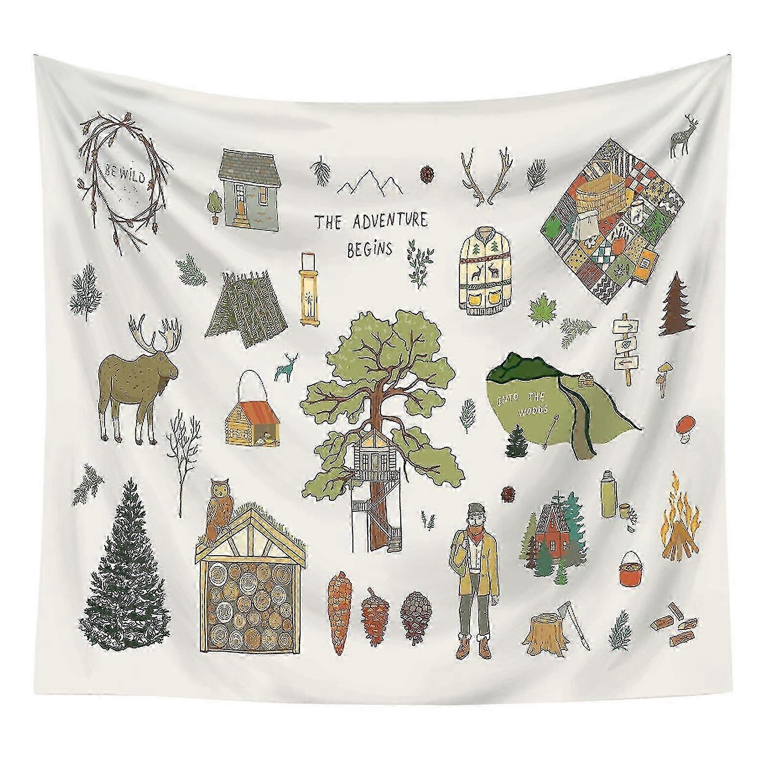Cartoon camping fabric forest and mountain scenery outdoor camping tent theme birthday party hiking sign background