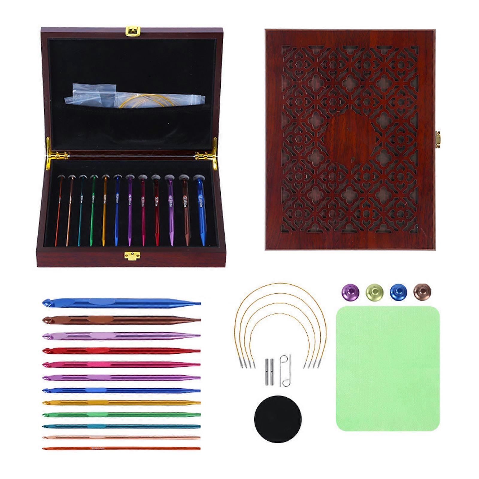 12Pcs Aluminum Tunisian Crochet Hook Interchangeable Circular Knitting Needle with Storage Bag for for Blanket Sweater Multicolor
