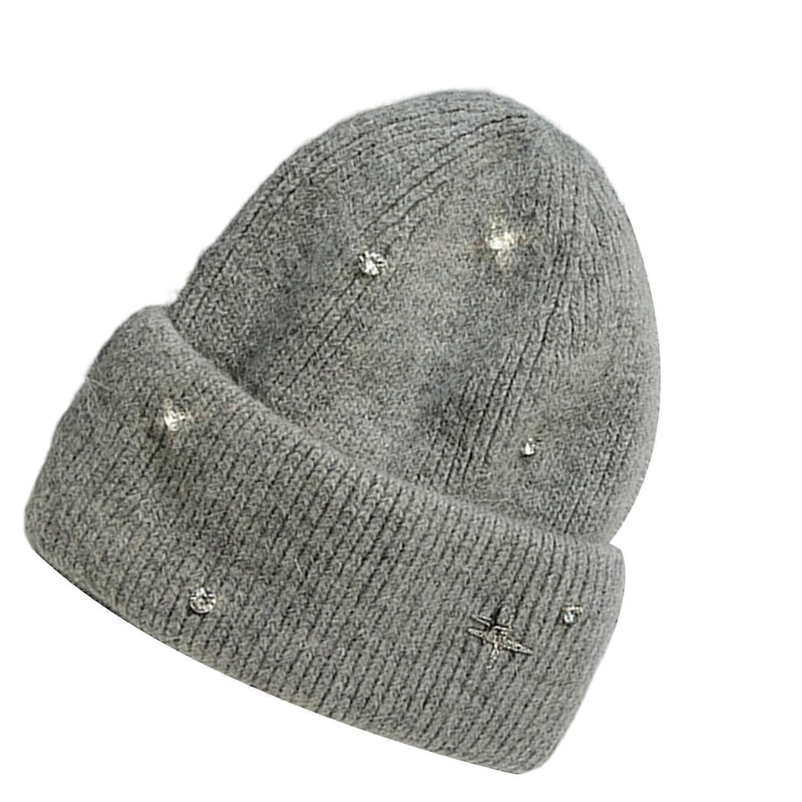 Stylish Acrylic Fibre Skull Cap With Rhinestones Decors Cold Weather Brimless Hat For Adult And Teens Daily and Streetwear Gray