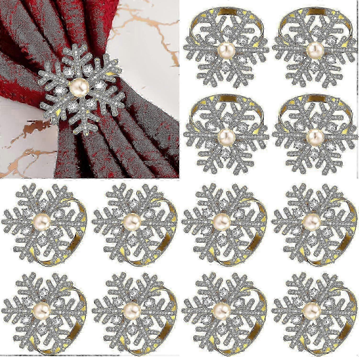 Package includes: you can receive 12 pieces of snowflake The size of each snowflake pattern is about 1.77 x 1.77 inches, and the diameter of the ring part is about 1.69 inches The size of snowflake napkin ring is suitable for most napkin cloth, so that the napkin cloth can maintain a good shape on the tableGorgeous and shiny appearance: the snowflake napkin holder adopts snowflake shape, and the snowflake pattern is inlaid with small rhinestones There is a large pearl in the middle and several large rhinestones around It is very gorgeous and shiny as a whole, highlighting your taste and be the highlight of your dining tableIncrease the festive atmosphere: the Christmas snowflake napkin ring adopts the modeling design of snowflakes, which is very suitable for Christmas Use these exquisite to decorate your Christmas table, increasing the Christmas atmosphere of the table, and let your guests feel your careful preparation for the tableMeet different decorative needs: the appearance of Xmas napkin buckle is exquisite, so you can not only decorate napkin cloth with snowflake napkin ring, but also can use them to decorate wine, cake, bouquet, etc, to add a delicate feeling to these items Or you can give the snowflake napkin ring as a practical and exquisite gift to othersApplicable occasions: pearl rhinestone napkin ring can be applied in family dinners or other occasions, and can also be used in restaurants and bars for table decoration Snowflake napkin ring can be applied not only in Christmas decoration, but also in other festivals, weddings, dinners, parties, daily tables and other occasions