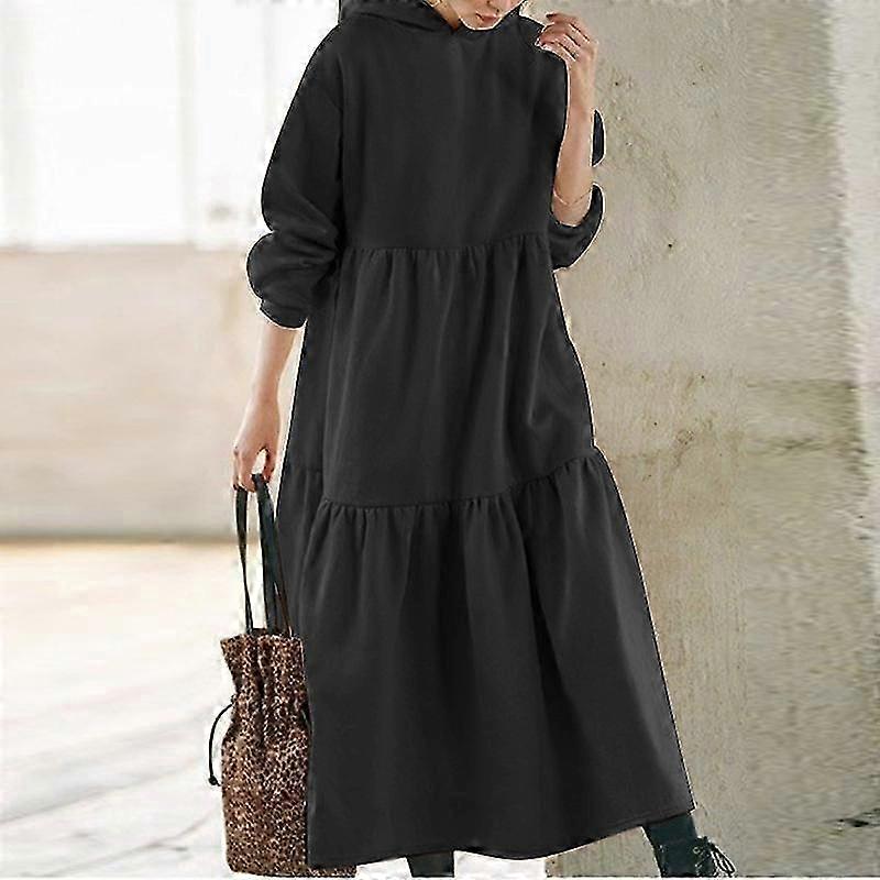 Vintage Sweatshirt Dress for Women, Long Loose Fit Solid Color Casual