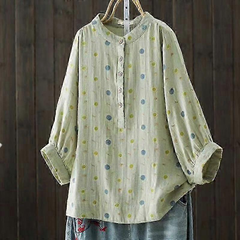 Double-Layer Cotton Yarn Shirt with Floral Print for Women, Stand Collar