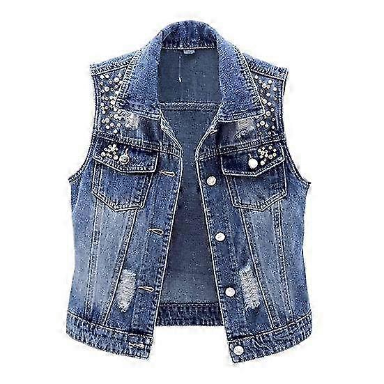 Ladies Denim Vest Sleeveless Loose Lapel Bead Decor Single-breasted Solid Color Vintage Firm Stitching Hip Hop Streetwear Lady Fall Spring Waistcoat Lightweight and supersoft polyester fabric for ultimate comfort. Sleeveless waistcoat jacket with lapel for a trendy and stylish look. Loose fit design ensures unrestricted movement and easy wearability. Versatile piece that can be paired with skinny jeans, leggings, sandals, or high heels for a simple and chic outfit. Perfect for various occasions such as casual street style, office wear, vacation, parties, outdoor activities, and leisure time. Introducing our Women's Lightweight Waistcoat Jacket, the perfect addition to your wardrobe! Made from a lightweight supersoft polyester fabric, this jacket is incredibly soft and comfortable to wear. The sleeveless design with lapel and solid color gives it a simple yet stylish appearance that is popular among women of all ages. The loose fit ensures that you feel unrestricted and can easily layer it over any outfit. Whether you pair it with skinny jeans, leggings, sandals, or high heels, this jacket will effortlessly elevate your look and make you appear more simple and stylish. It is suitable for various occasions such as casual street looks, office wear, vacations, parties, outdoor activities, leisure time, and even work. With its versatility and comfort, this waistcoat jacket is a must-have for every fashion-forward woman. Don't miss out on this amazing piece - order yours today! Item Name: Coat Material: Polyester Size Type: Plus Size Style: Casual Gender: Women Length: Short Collar: Lapel Sleeve Length: Sleeveless Season: Fall, Spring Features: Beads Decor, Single-breasted, Cardigan Size Details: Size: M, Bust: 96cm, Clothes Length: 58cm(Approx.) Size: L, Bust: 100cm, Clothes Length: 59cm(Approx.) Size: XL, Bust: 104cm, Clothes Length: 60cm(Approx.) Size: 2XL, Bust: 108cm, Clothes Length: 61cm(Approx.) Size: 3XL, Bust: 112cm, Clothes Length: 62cm(Approx.) Size: 4XL, Bust: 116cm, Clothes Length: 63cm(Approx.) Notes: Please refer to our size chart and choose the right size. Due to the light and screen setting difference, the item's color may be slightly different from the pictures. Package Includes: 1 x Coat