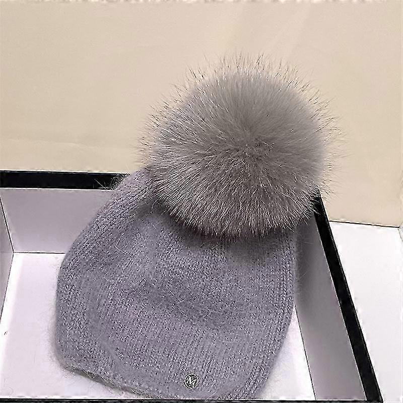 Soft Winter Hat for Women Knitted Beanie with Real Fox Fur Pom