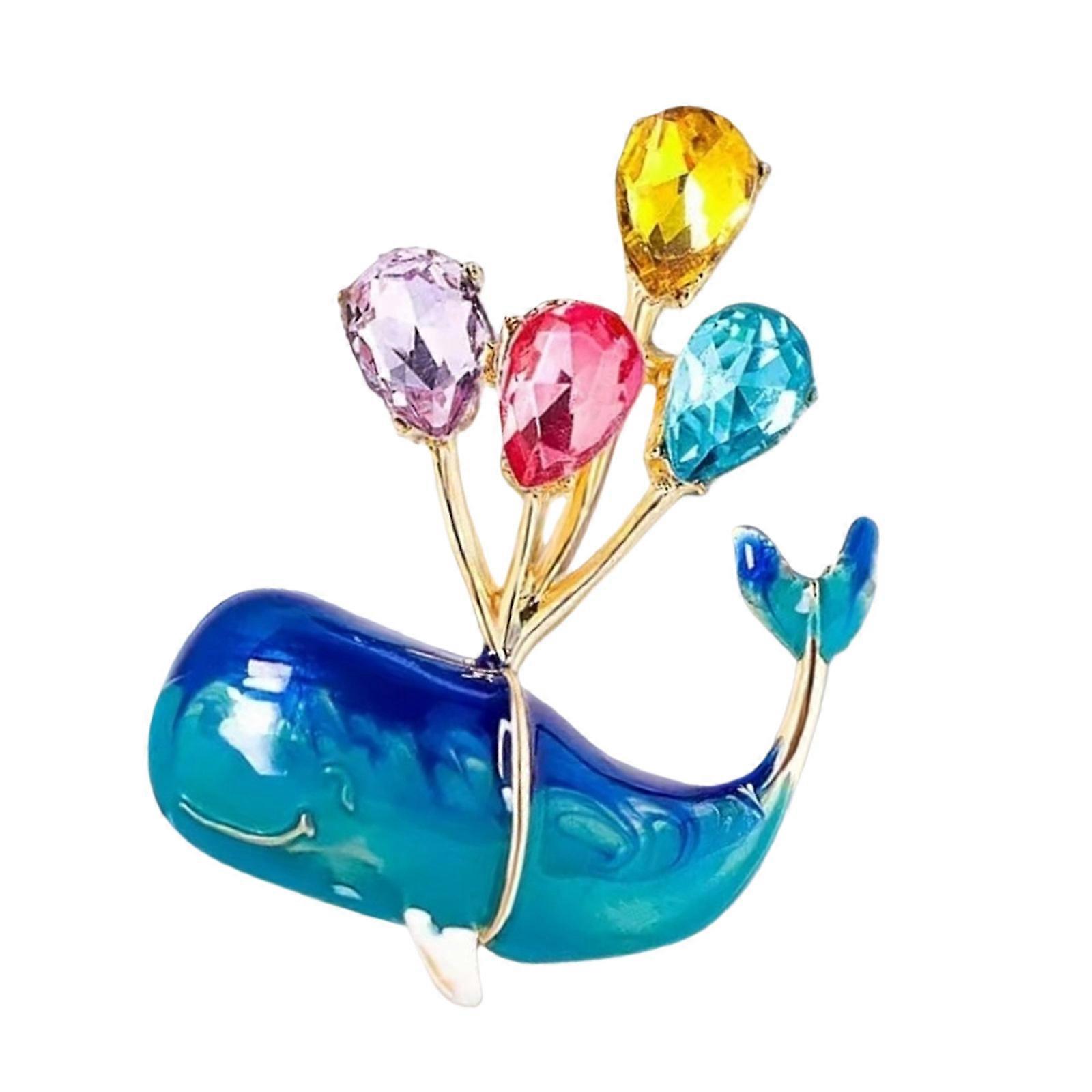 Enchanting Whale Shaped Brooch With Floating Balloon Details Sparkling Rhinestones Accents Unisex Party Accessory Color