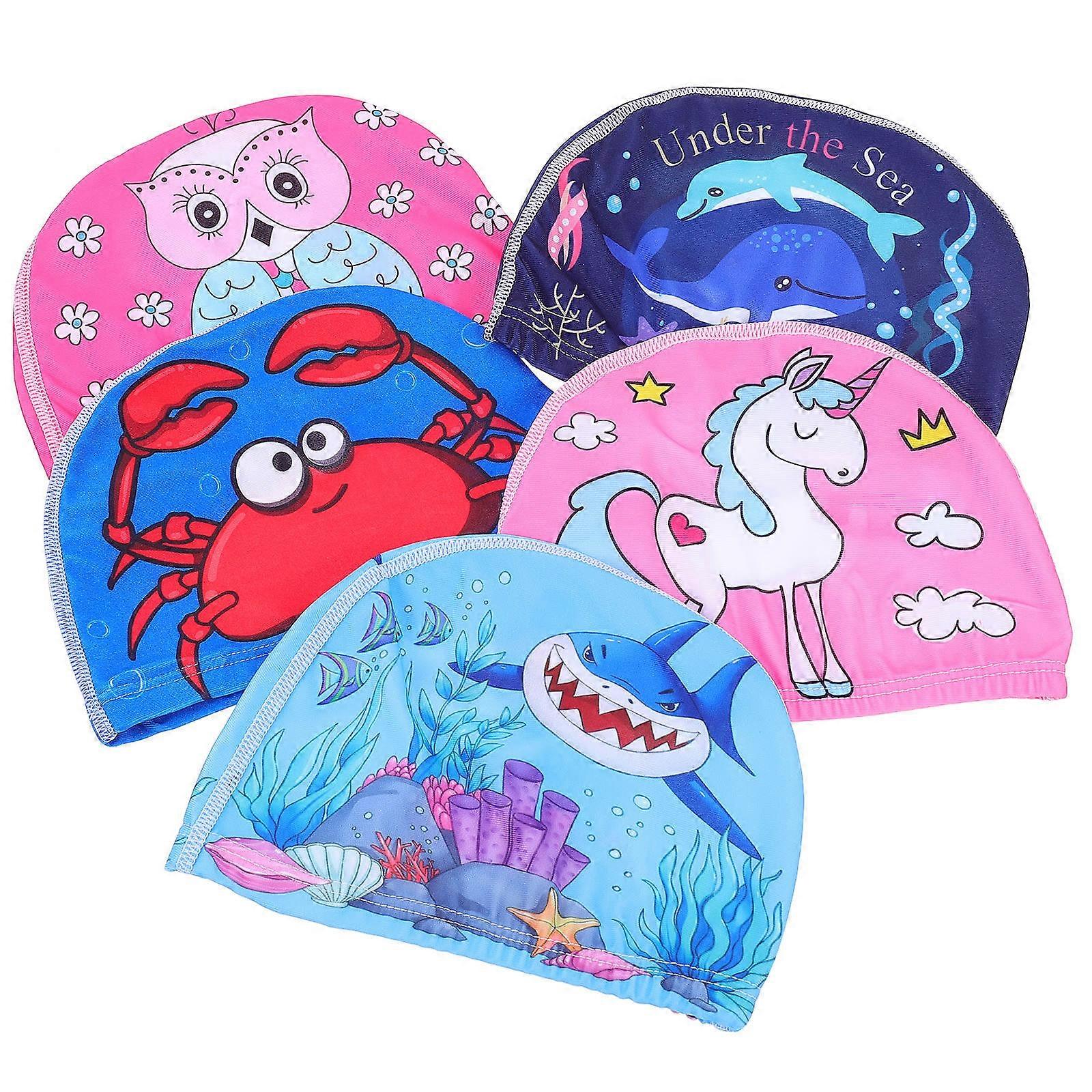 Cartoon Print Children Swim Hats for Wear-Resistant Use 5Pcs Set