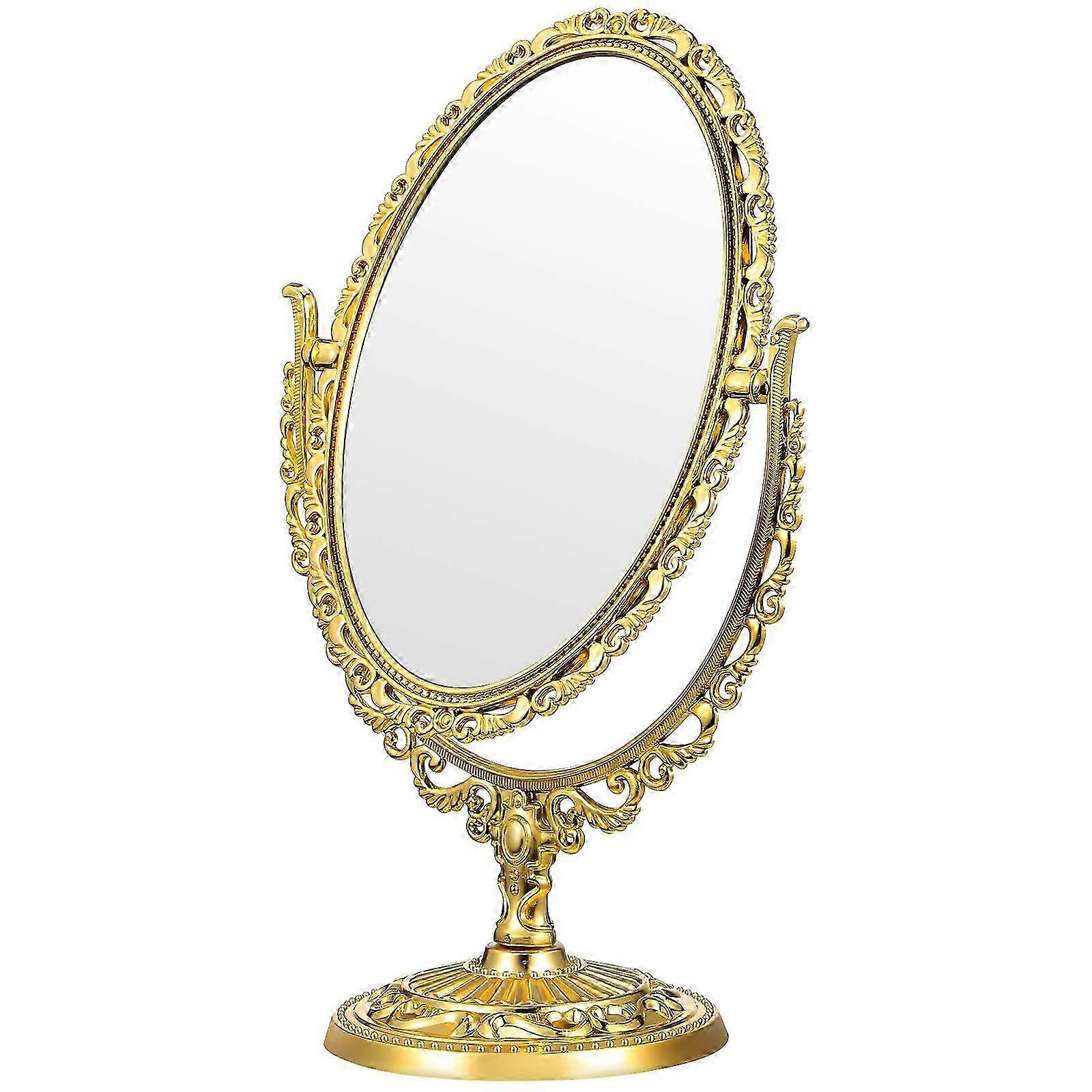 Oval Vanity Mirror for Home, Golden European Style Double Sided Makeup Cosmetic Mirror