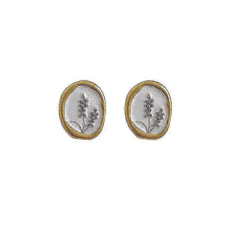 Enamel flower ear studs for women, elegant French vintage irregular lavender.