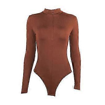 Zipper Front Bodysuit for Women, Long Sleeve Fleece Lined Winter Romper