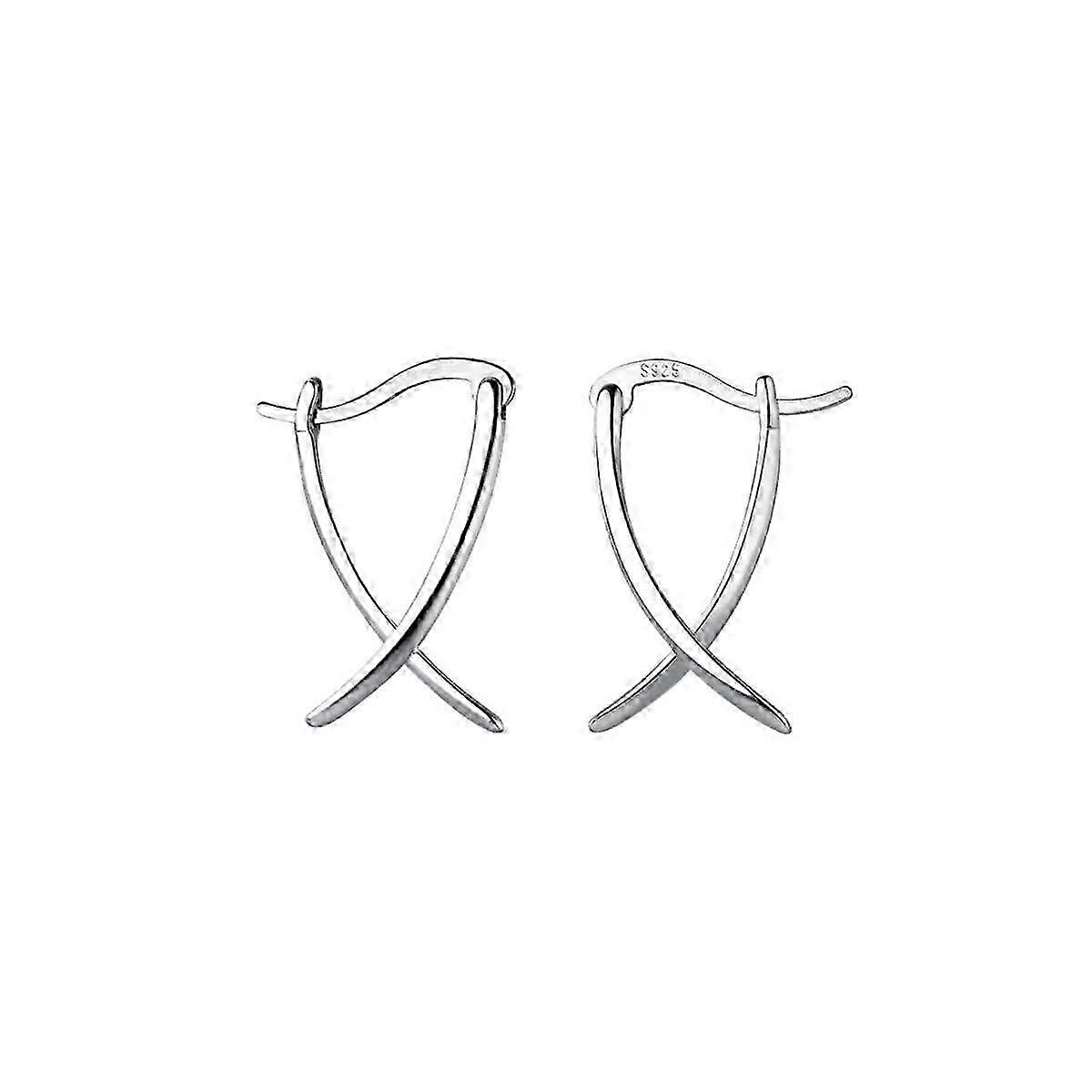 Sterling Silver Hoop Earrings for Women Minimalist X Design Huggie Hoops Small Size