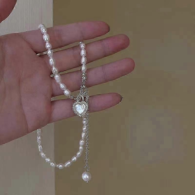 Clavicle Chain Necklace for Women, French Retro Natural Pearl Shell Love Design