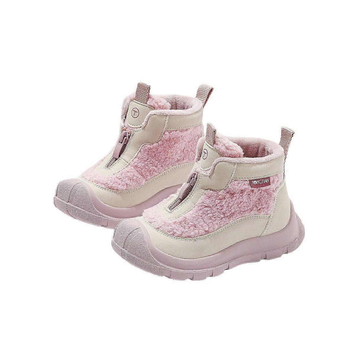 Winter Girls' Cotton Snow Boots Thickened Fleece Warm Kids' Shoes, Heavy Cotton Cold-Resistant
