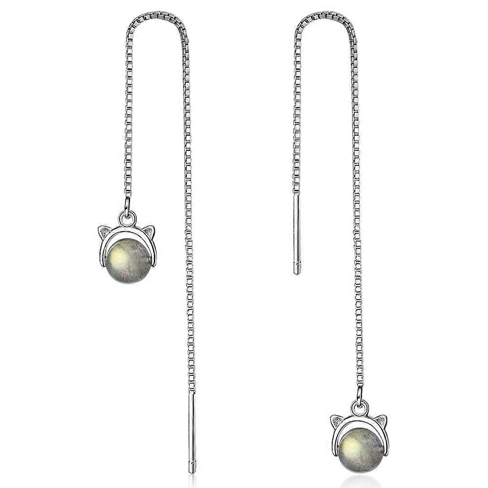 Earrings, Cute Cat Threader Long Moonstone Simple Elegant Teen Girl Dangle