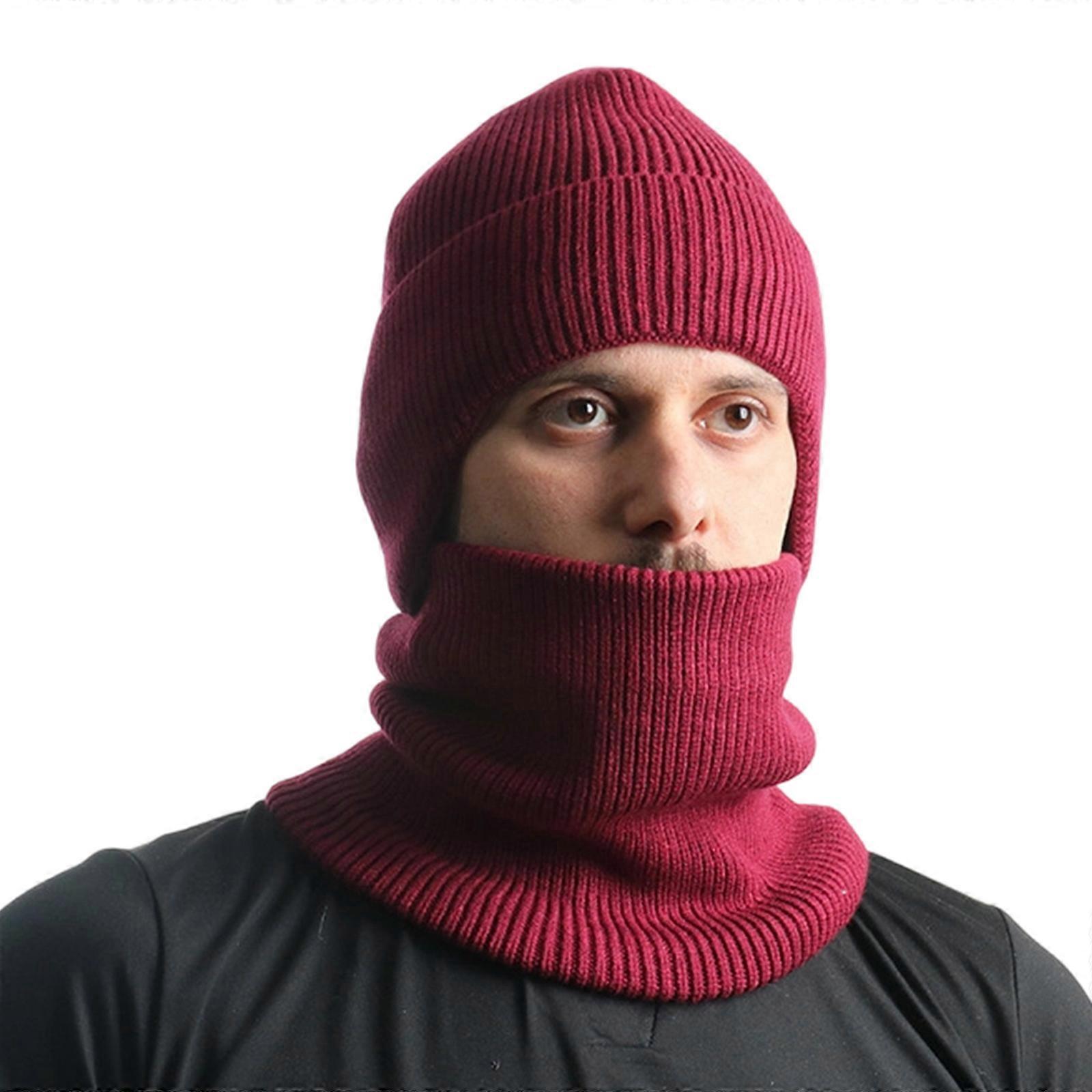 Winter Brimless Scarf Set Breathable Skull Hat Neck Gaiter for Women Men Windproof Hat for Snow Activity Everyday Wear Wine Red