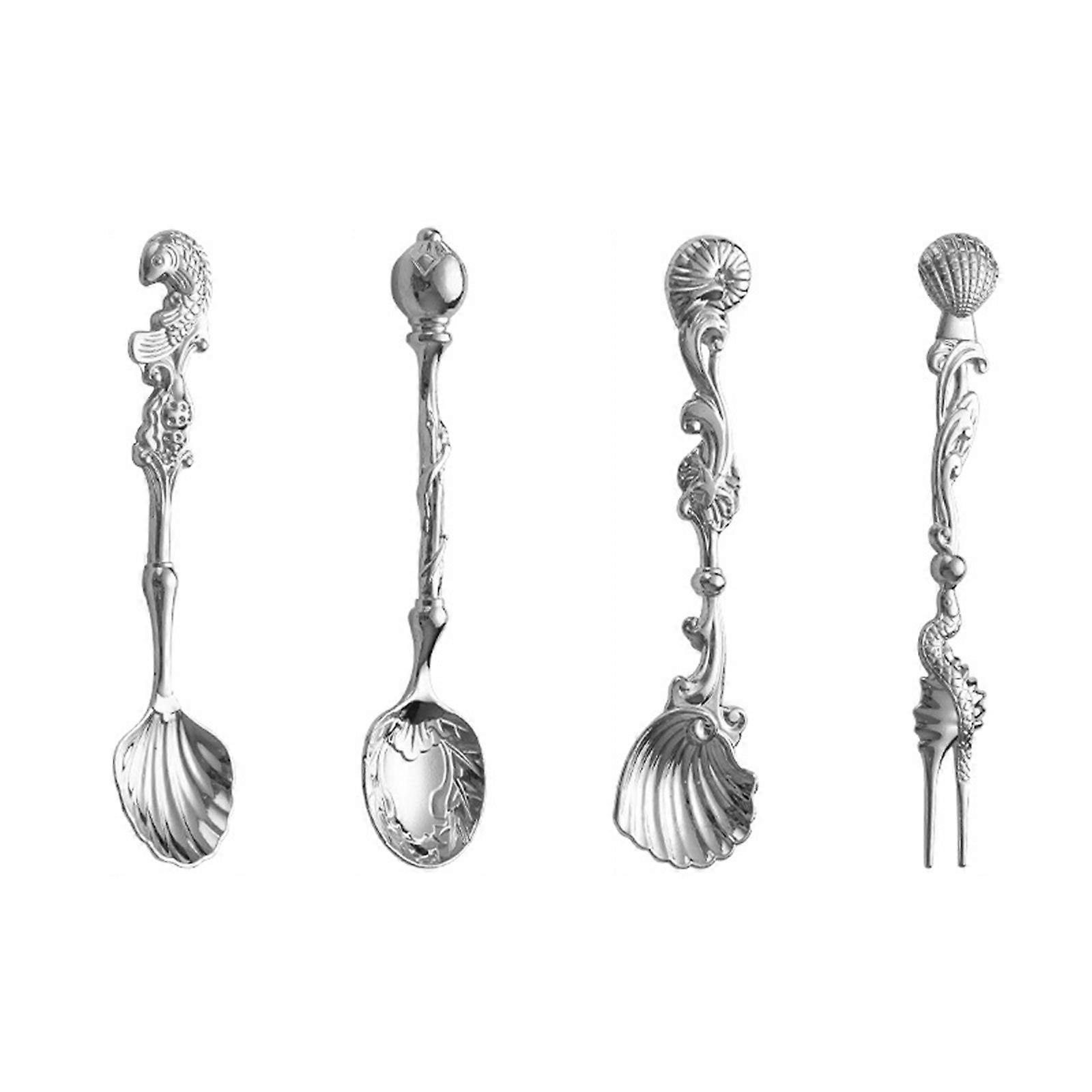Corrosions Resistant Antique Spoons with Ergonomic Handle Metal Demitasse Scoops for Seasoning Coffee Mixing Silver