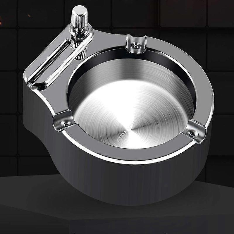 Luxora Stainless Steel Ashtray with Match Lighter - Retro Design 10 000 Ignitions High-Temperature Drop-Proof Round Ashtray for Easy Use