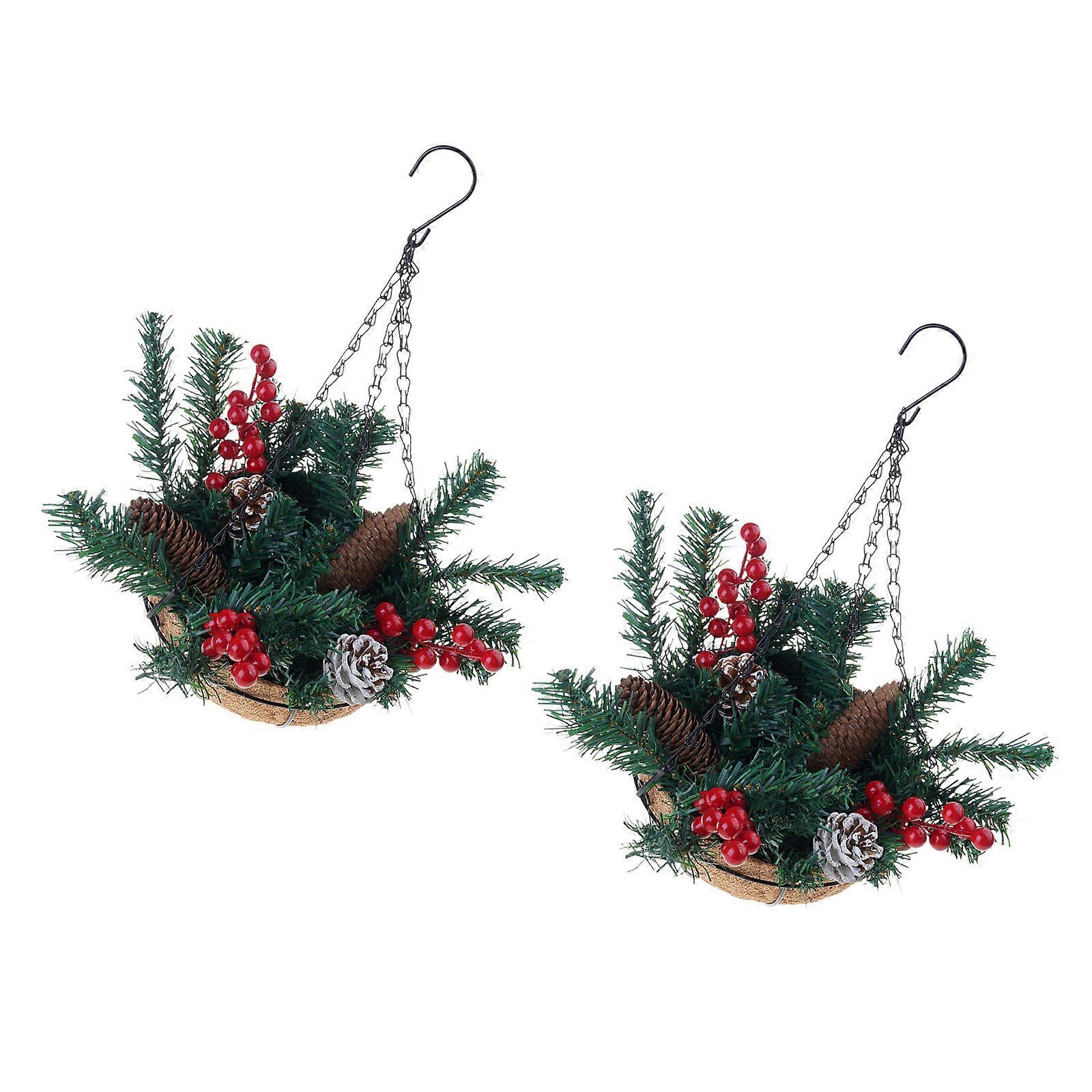 2 Pack LED Light Christmas Hanging Planter Outdoors Porch Decors with Pine Cones and Berries Elegant Hanging Wreath Multicolor