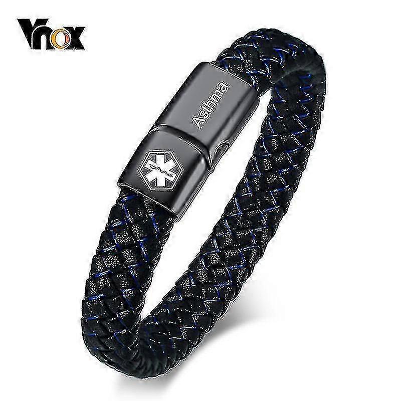 Medical Alert Bracelet for Men with Braided Leather Band and Secure Clasp