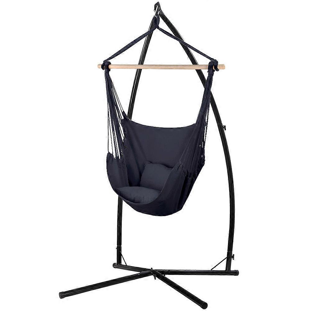 Gardeon Hammock Chair Outdoor Camping Hanging With Steel Stand Grey Hammocks