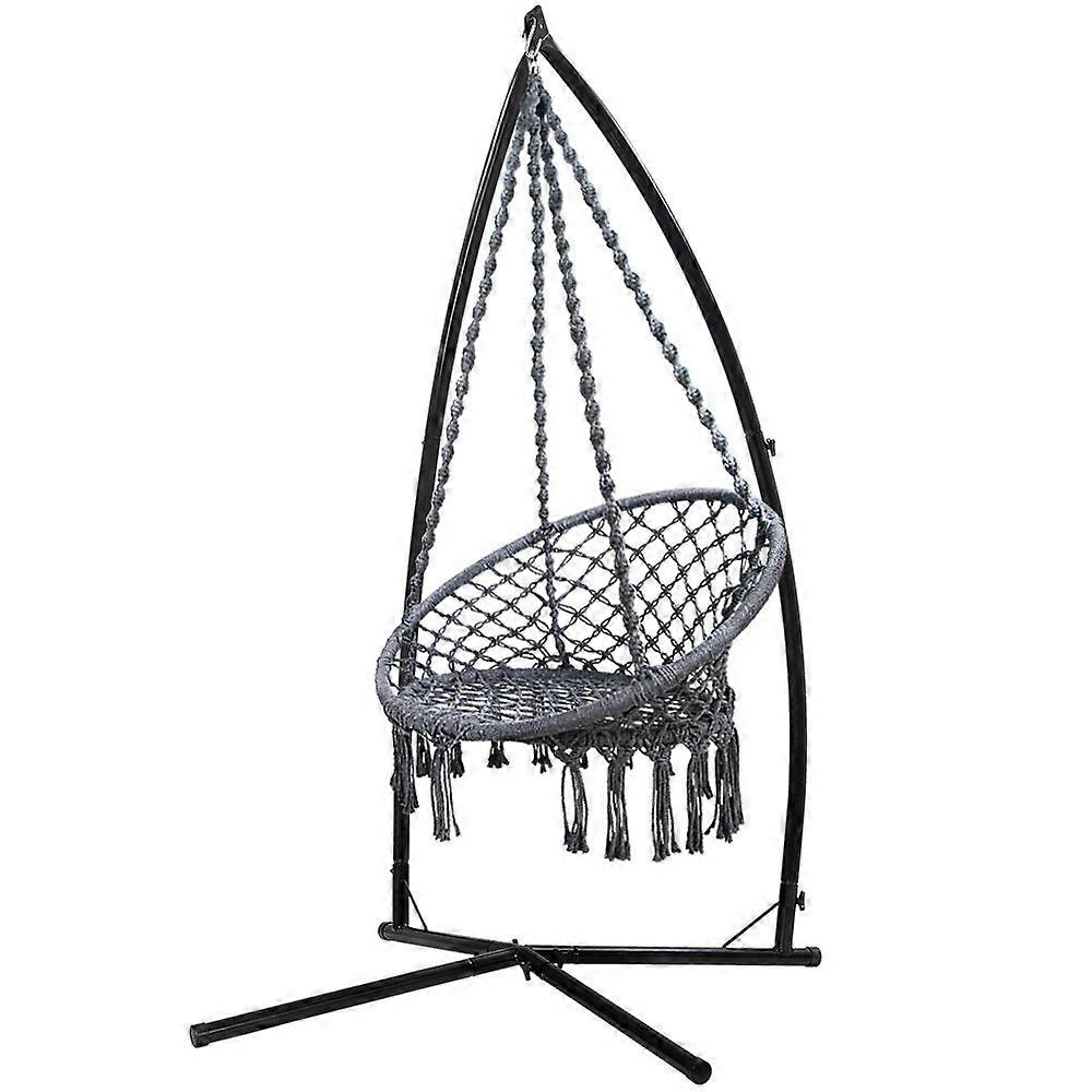 Gardeon Hammock Chair With Steel Stand Macrame Outdoor Swinging Grey Hammocks