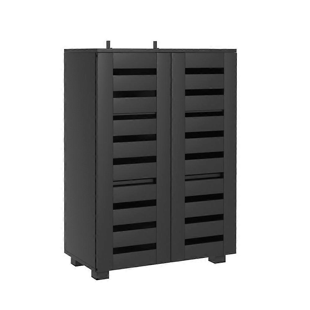 5-Tier Shoe Cabinet With 3 Shelves Holds Up To 20 Pairs Of Shoes (Depending On Shoe Size) Premium Particle Board Construction Hard-Wearing Melamine Finish For Durability Detachable Panels For Versatile Storage Options Push-To-Open System For A Sleek Design Ventilated Slatted Doors To Reduce Odours Heavy-Duty Metal Hinges For Long-Lasting Use Wall-Mount Hardware Included For Added Stability Compact Size Fits Hallways Laundry Or Small Rooms Specifications: