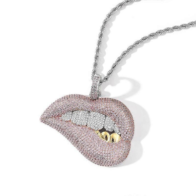 (New arrival) 3mm x 60cm Sexy Lip Biting Hip Hop Pendant Micro-Set Zircon Necklace